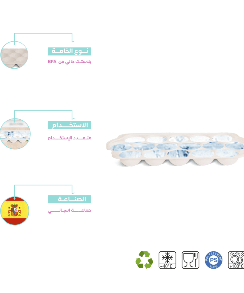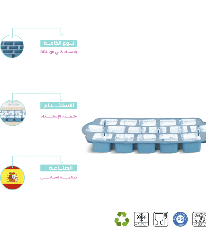 قالب مكعبات ثلج بلاستيك | يحتوي على 16 مكعب ثلج | صناعة إسبانية
