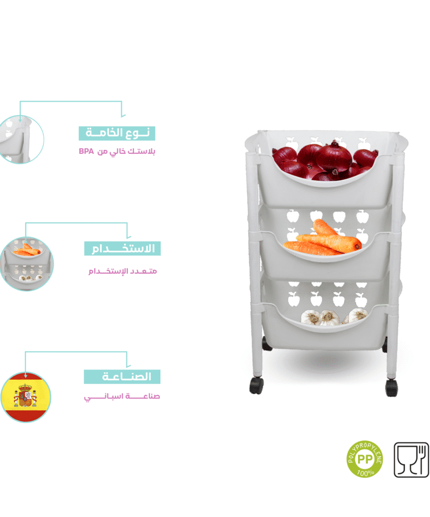 Plastic Trolley with Wheels for Kitchen – 3 Tier – Spanish Made