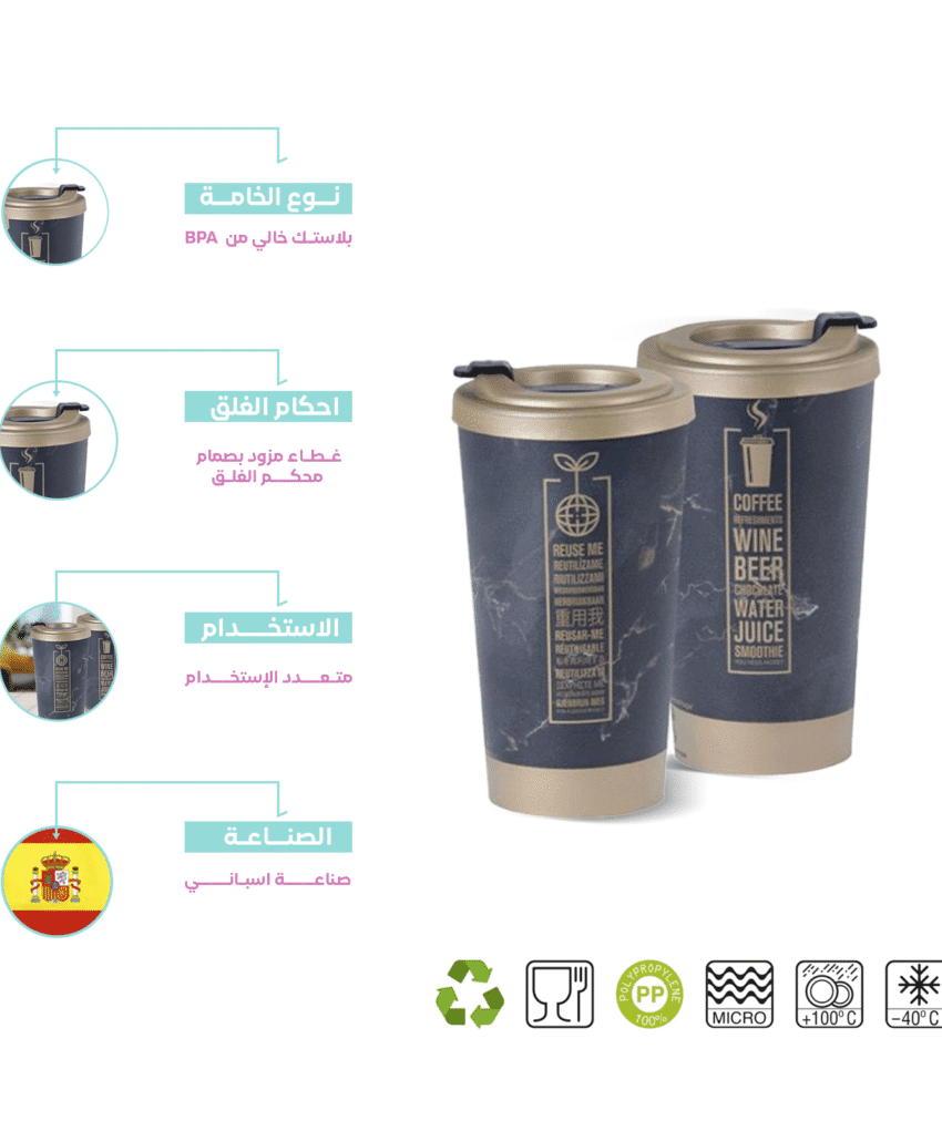 مج بلاستيك بغطاء للقهوه والايس كوفي | محكم الغلق