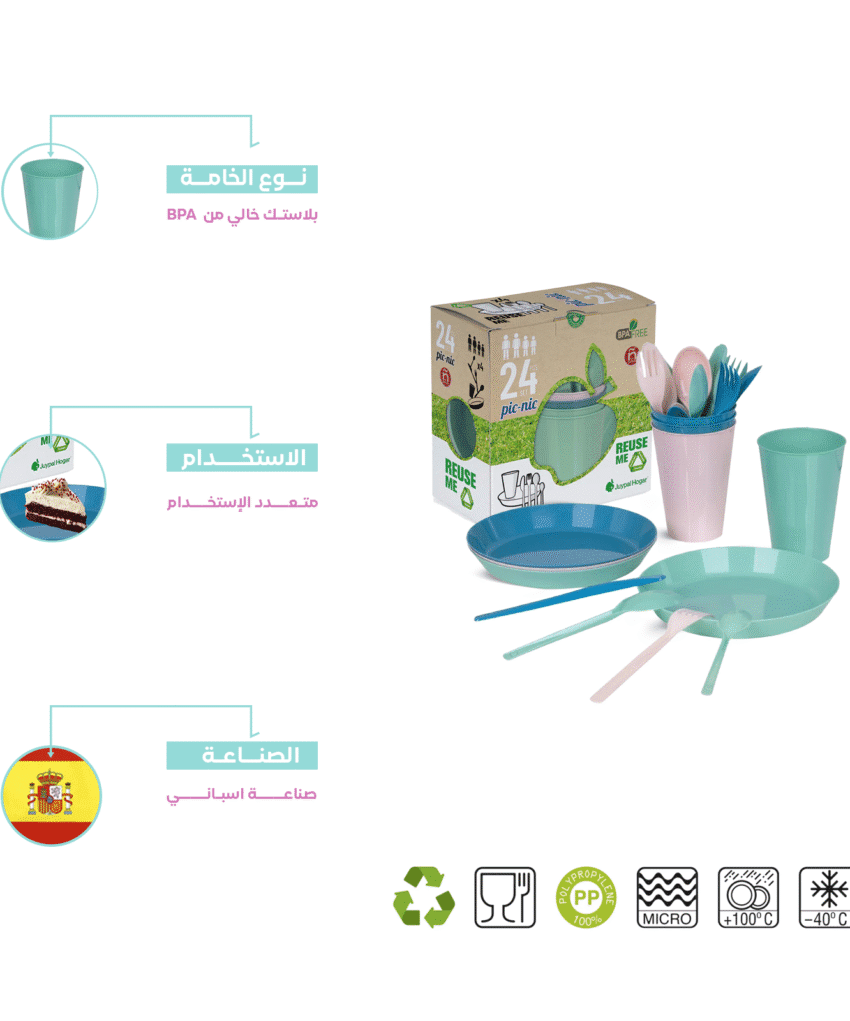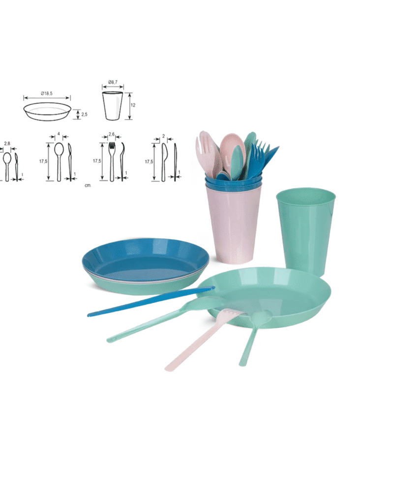 طقم رحلات بلاستيك كامل لتناول الطعام | اطباق كوبيات شوك ومعالق