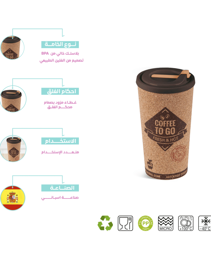 كوب قهوة بلاستيك بغطاء محكم الغلق | متاح بتصميم خشبي
