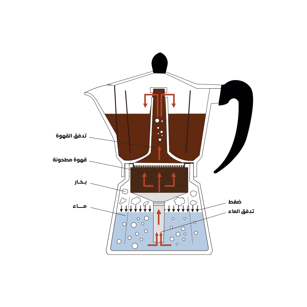 • بعد بضع دقائق، سيتصاعد بخار القهوة من القاعدة إلى الحجرة العلوية.