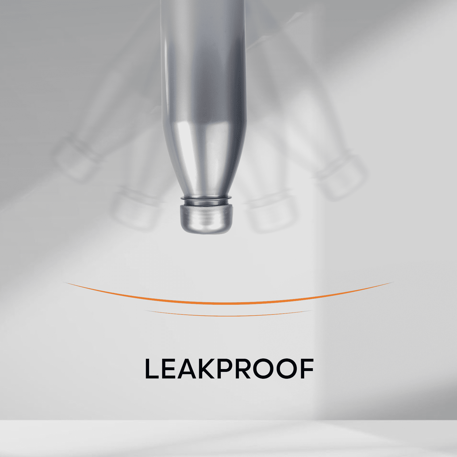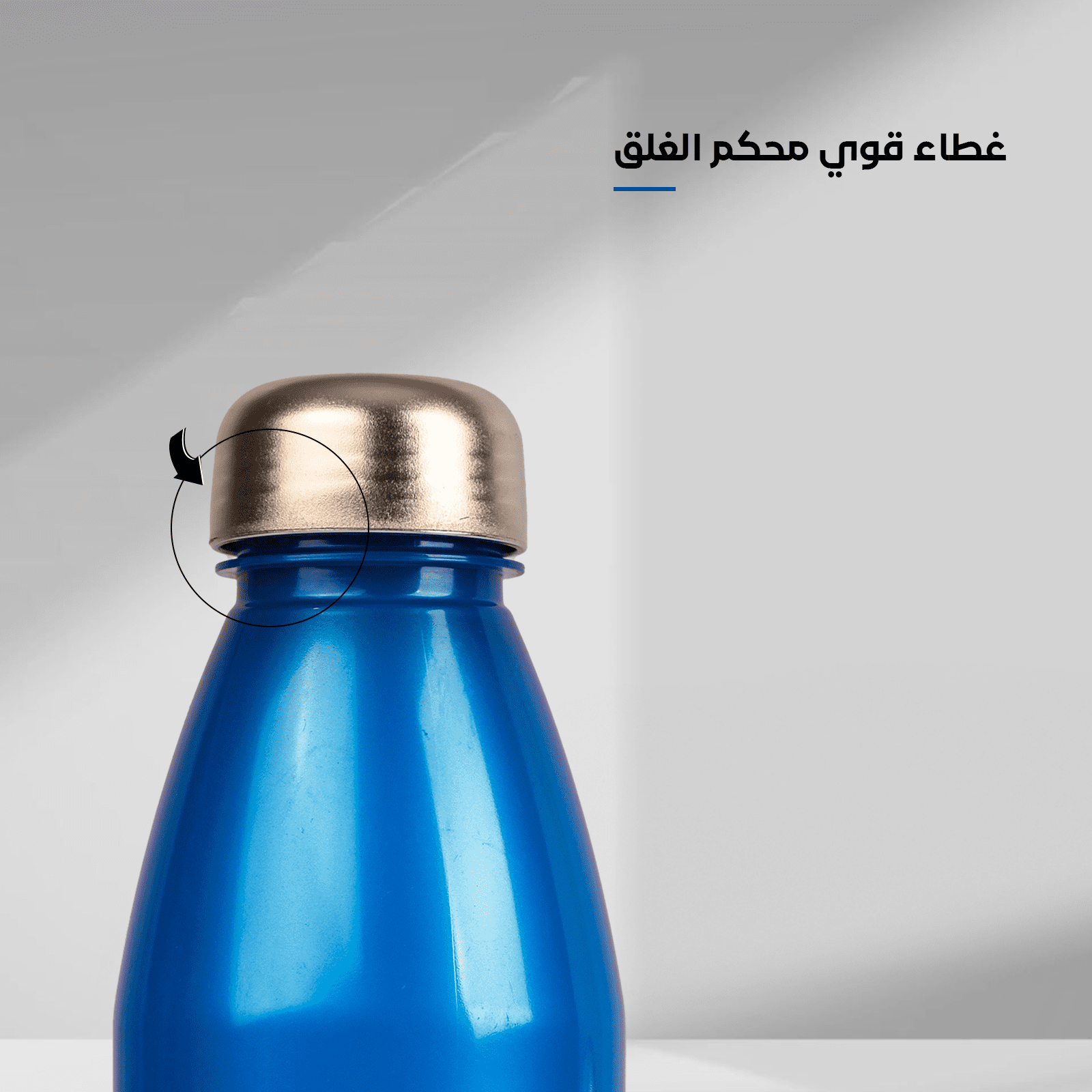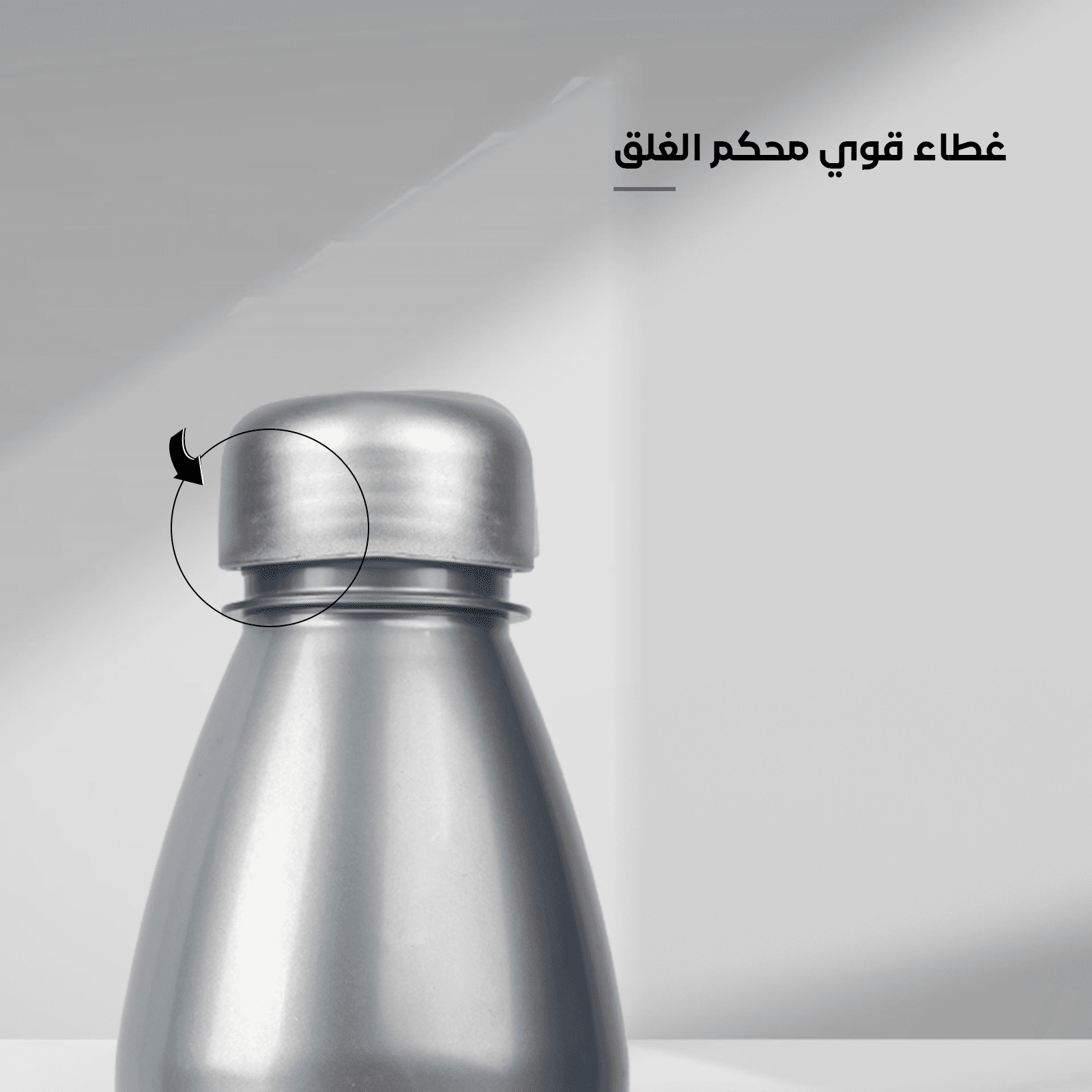 الزجاجة مصنوعة من مادة التريتان المتينة، القادرة على تحمّل المشروبات الساخنة والباردة مثل العصائر والماء والقهوة، كما تتميز بغطاء قوي وآمن يمنع التسرّب.