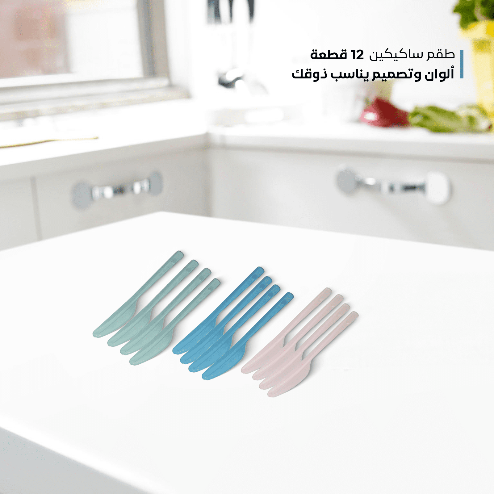 سكاكين بلاستيكية صغيرة مكونة من ١٢ قطعة، ومتوفرة بألوان متنوعة تناسب جميع الأذواق. ومن الجدير بالذكر أن هذه المجموعة مناسبة للاستخدام في أي مكان، سواءً في النزهات أو في أماكن العمل.
