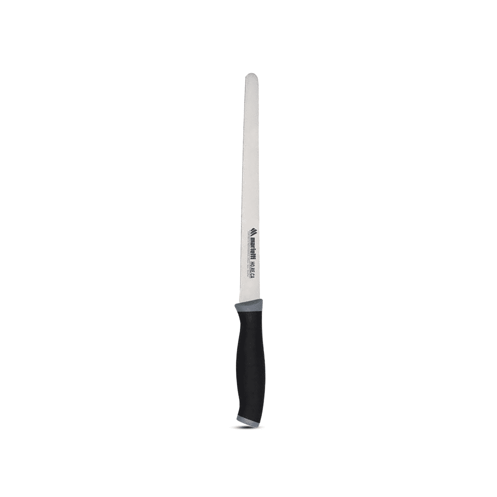 سكين لتقطيع السمك والسلمون تأتي بشفرة طويلة، مسطحة وحادة، مصنوعة من ستانلس ستيل عالي الجودة.