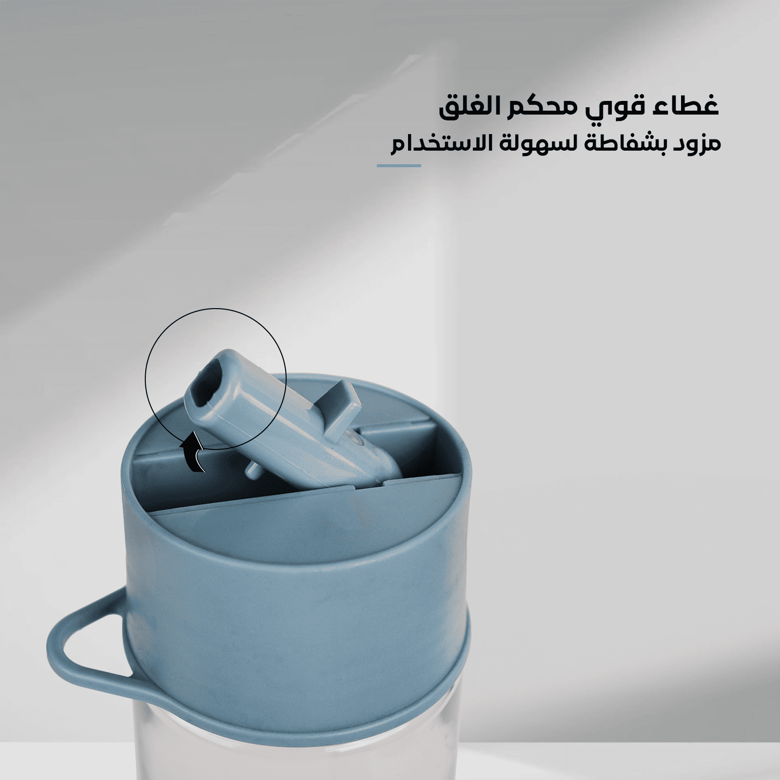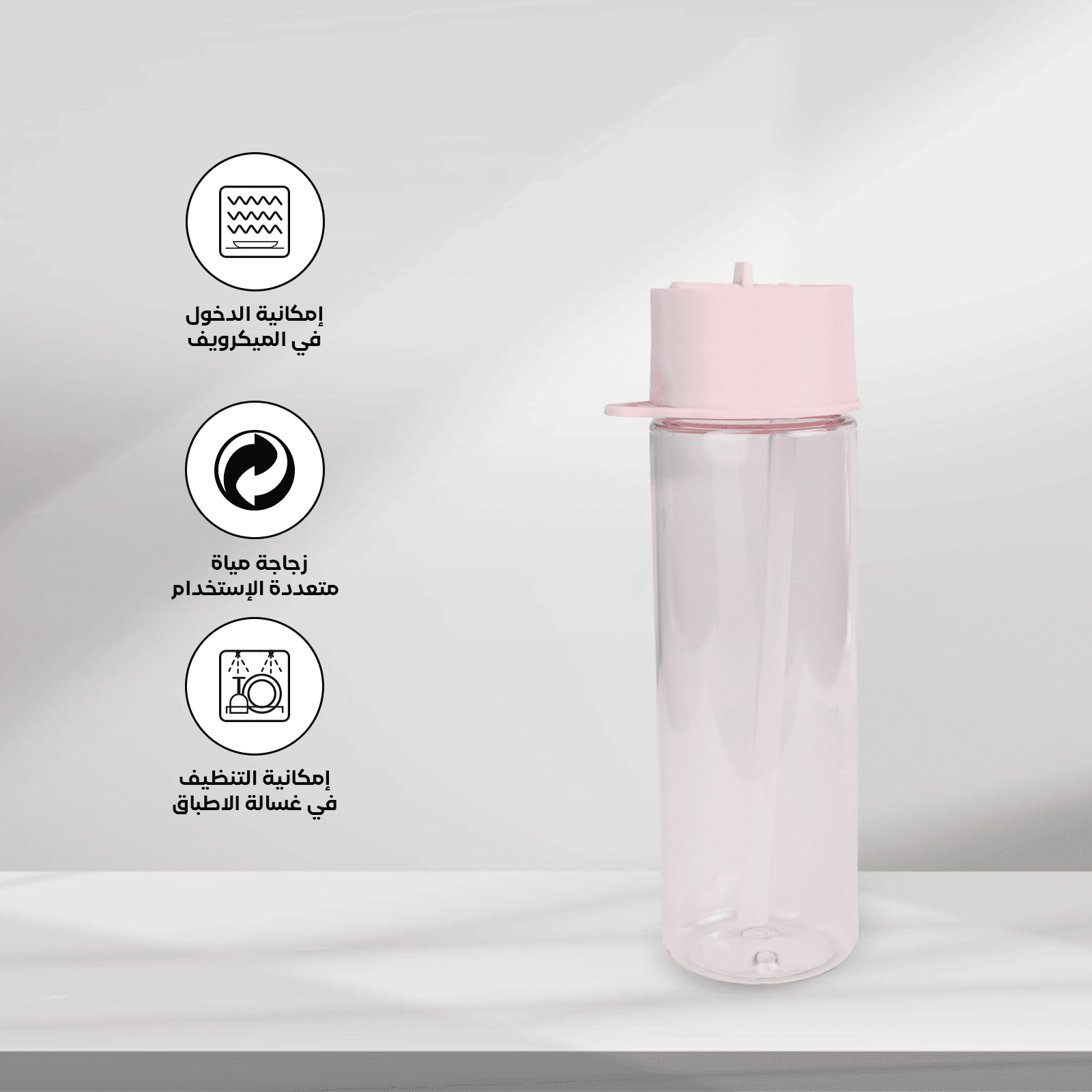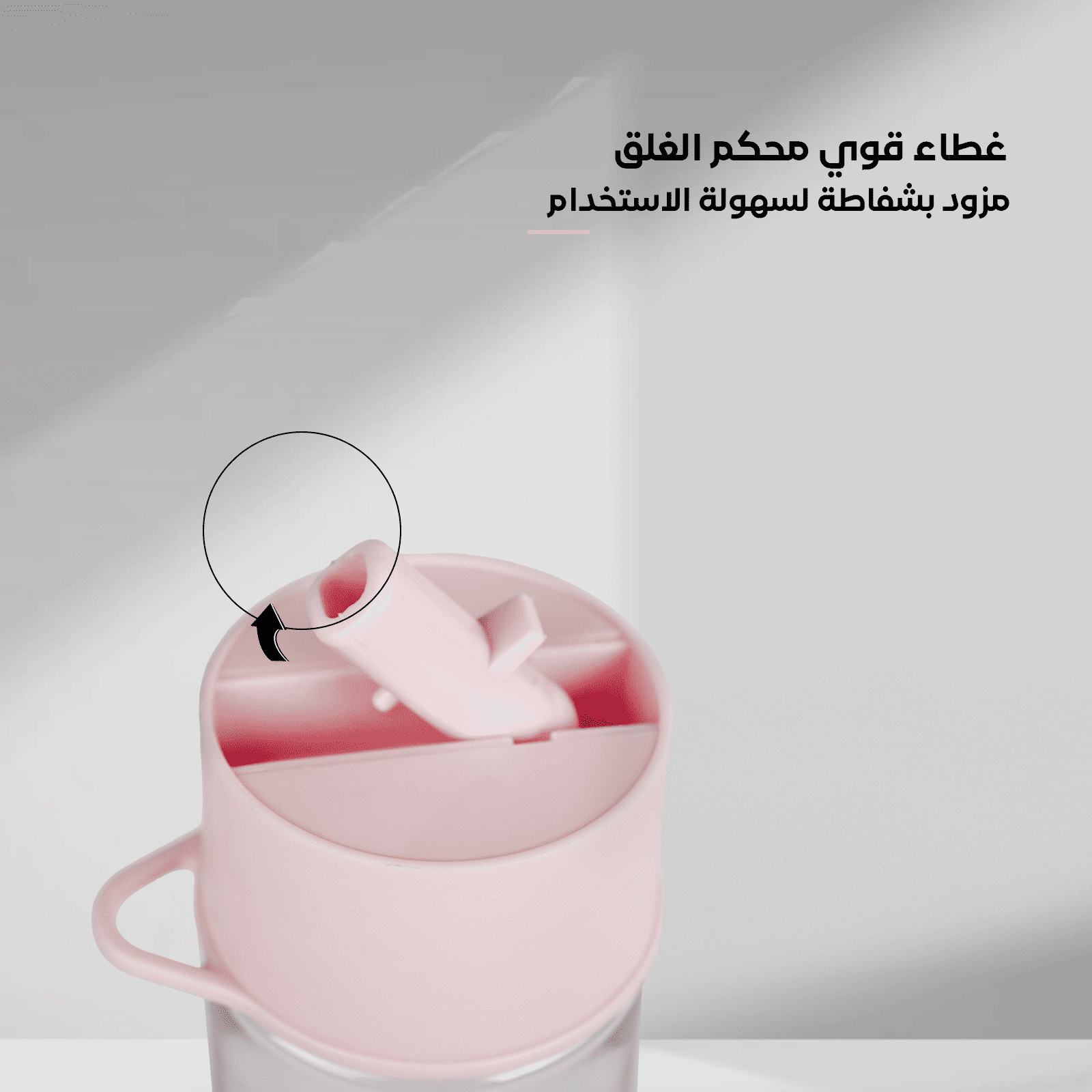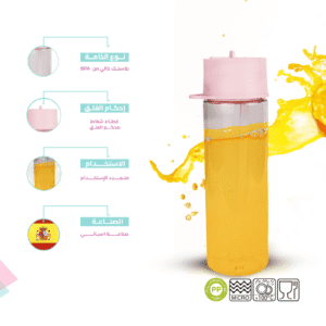 The bottle features a straw lid that is easy to open and close, preventing spills, The materials used are eco-friendly, BPA-free, dishwasher-safe for daily cleaning and safe for microwave and freezer, withstanding temperatures from -40°C up to +100°C.