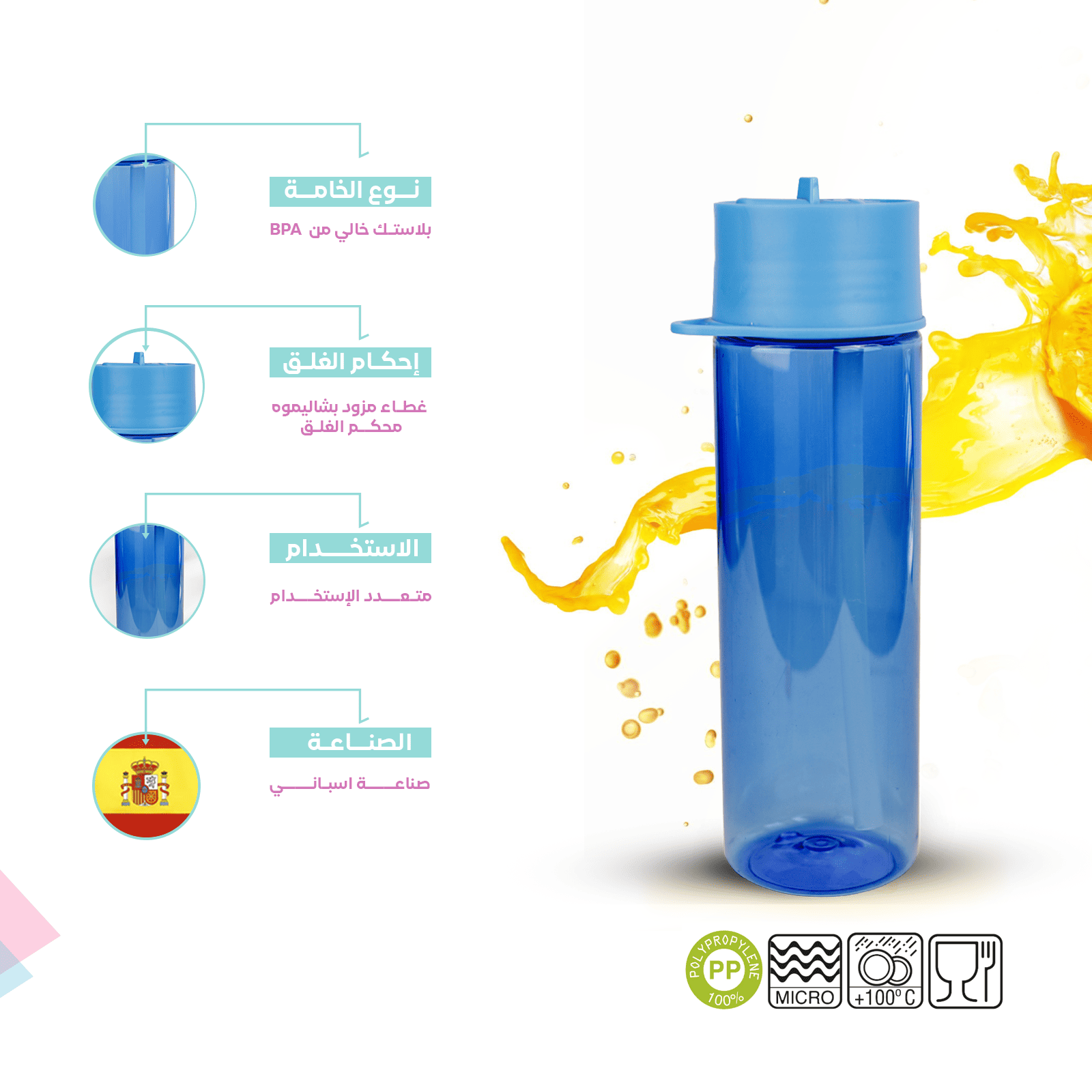 600ml water bottle with straw, available in different colors, made in Spain, Lightweight and easy for children to use, it is versatile and not limited to just water.