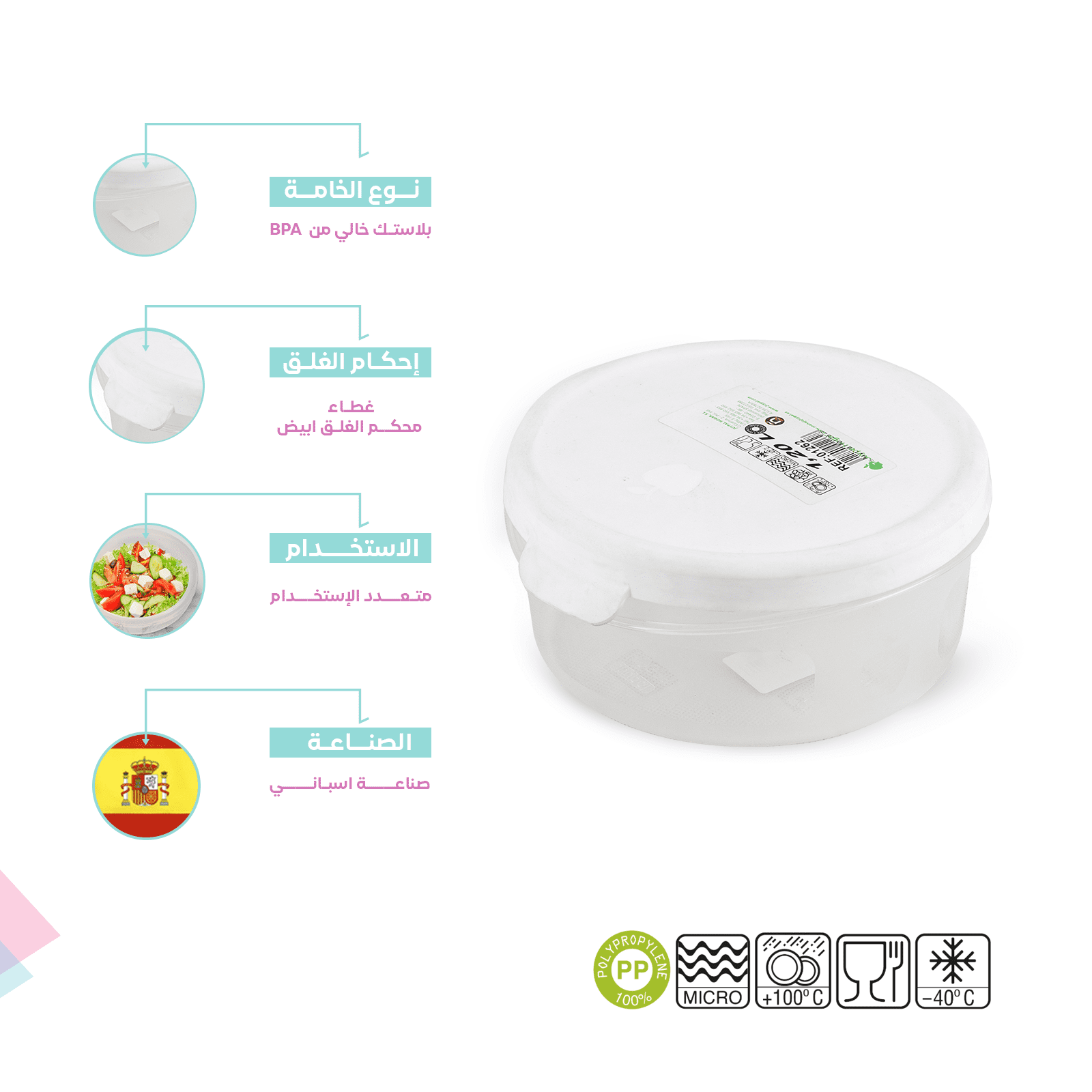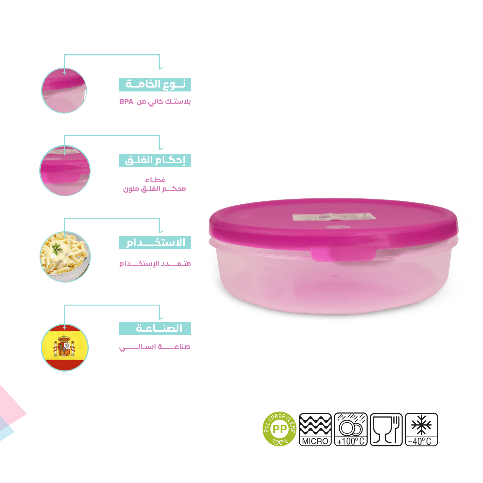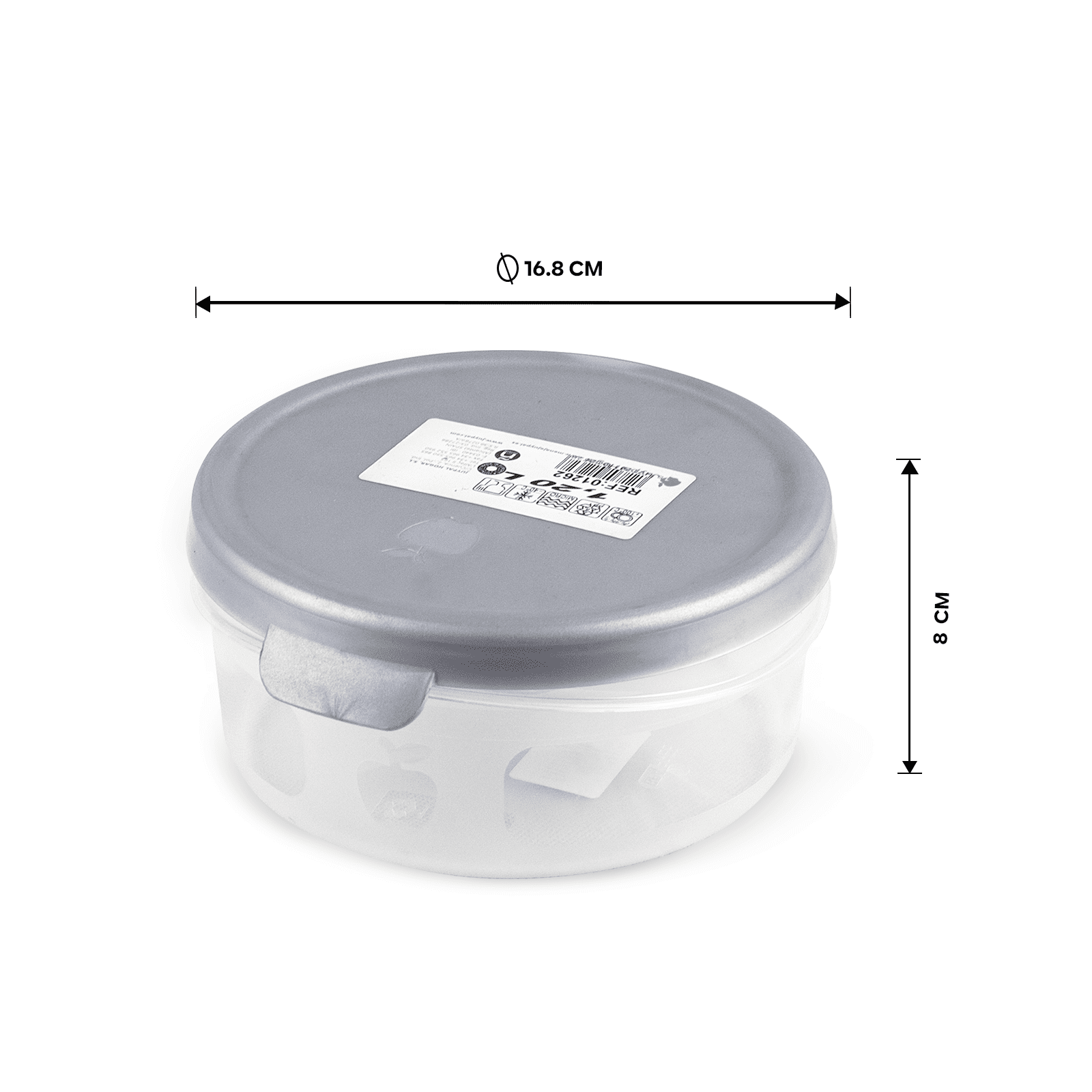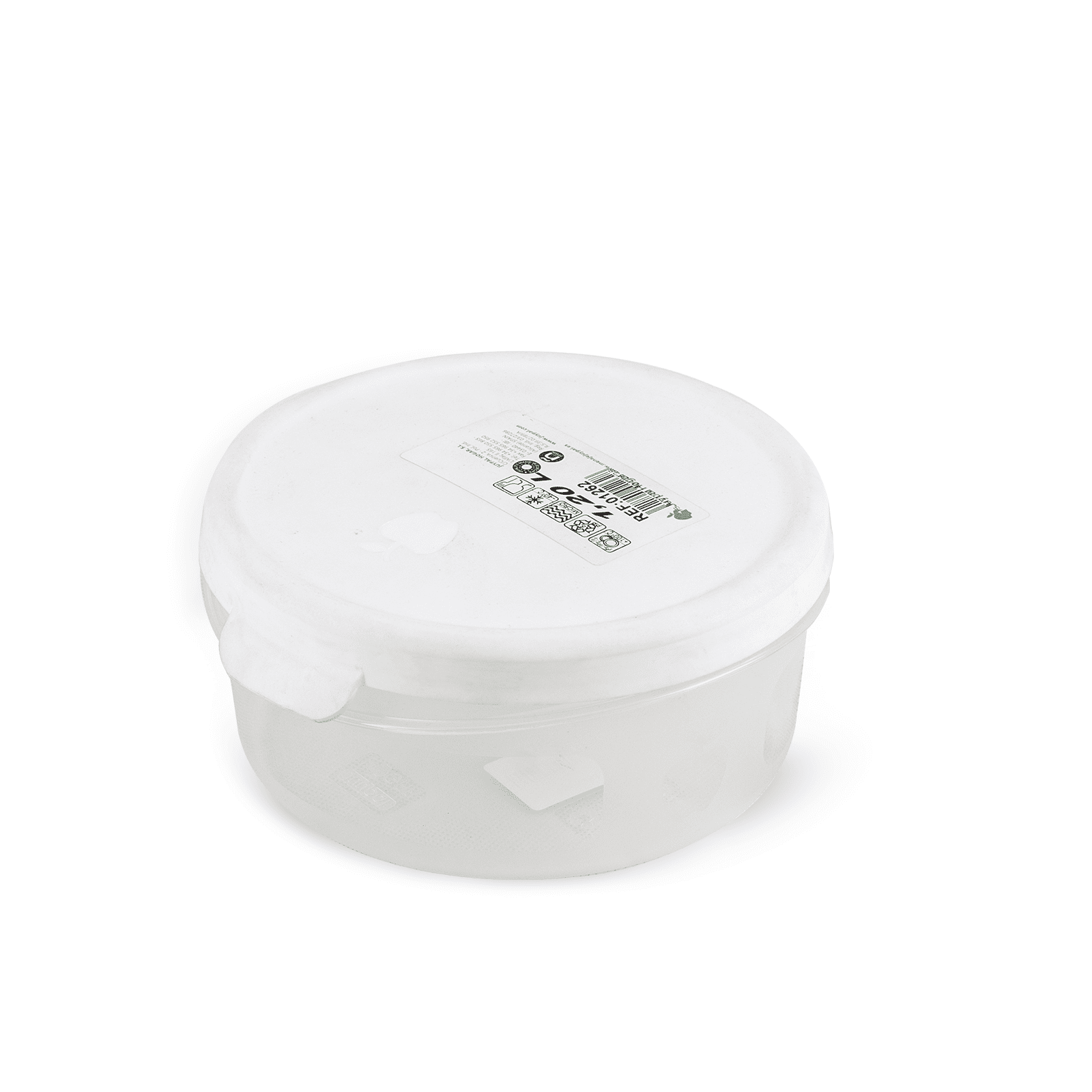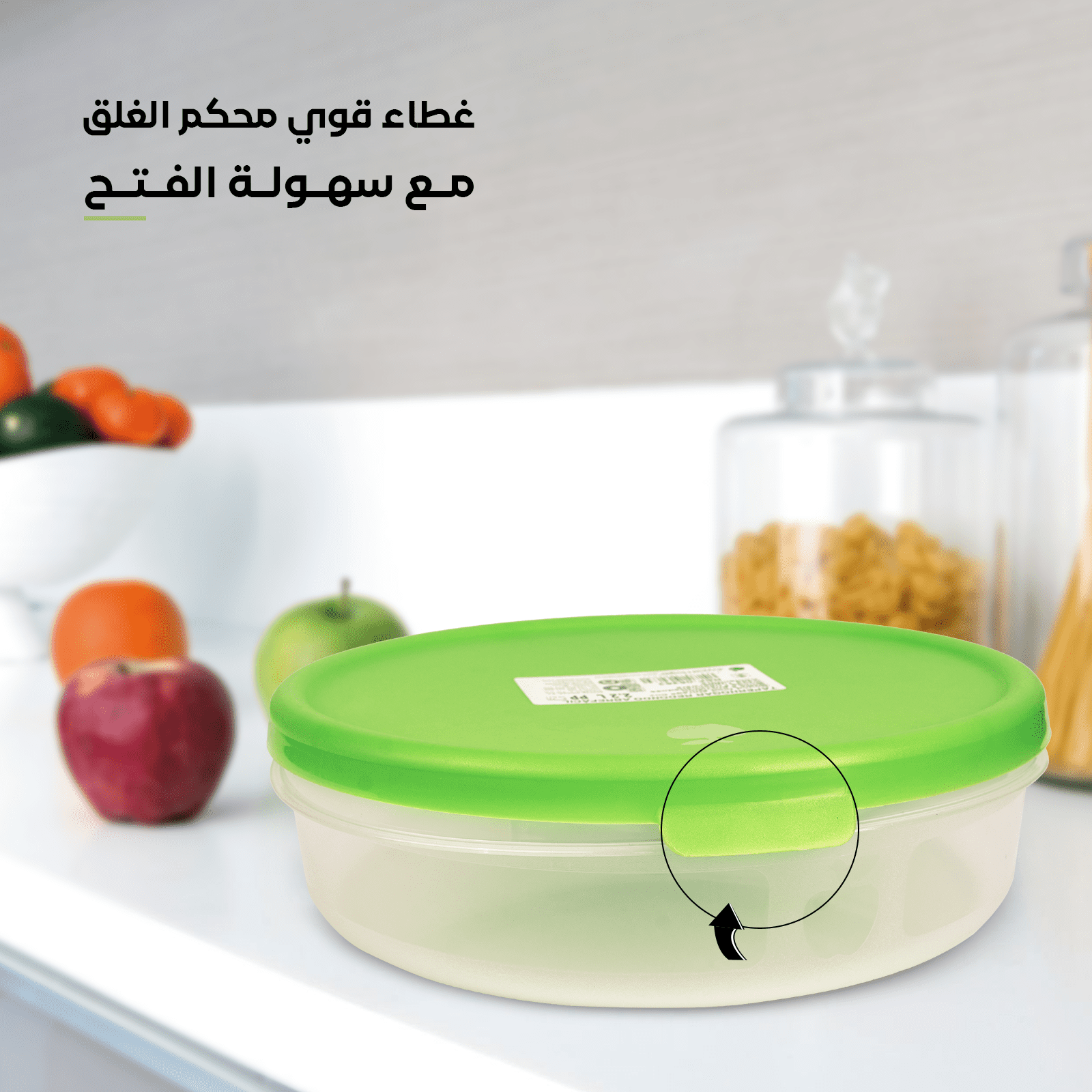 Round plastic food storage containers, different sizes and colors to suit all tastes, ideal for storing foods such as: dry ingredients and food scraps. They are designed in a circular shape to contribute to improving the use of the refrigerator space.