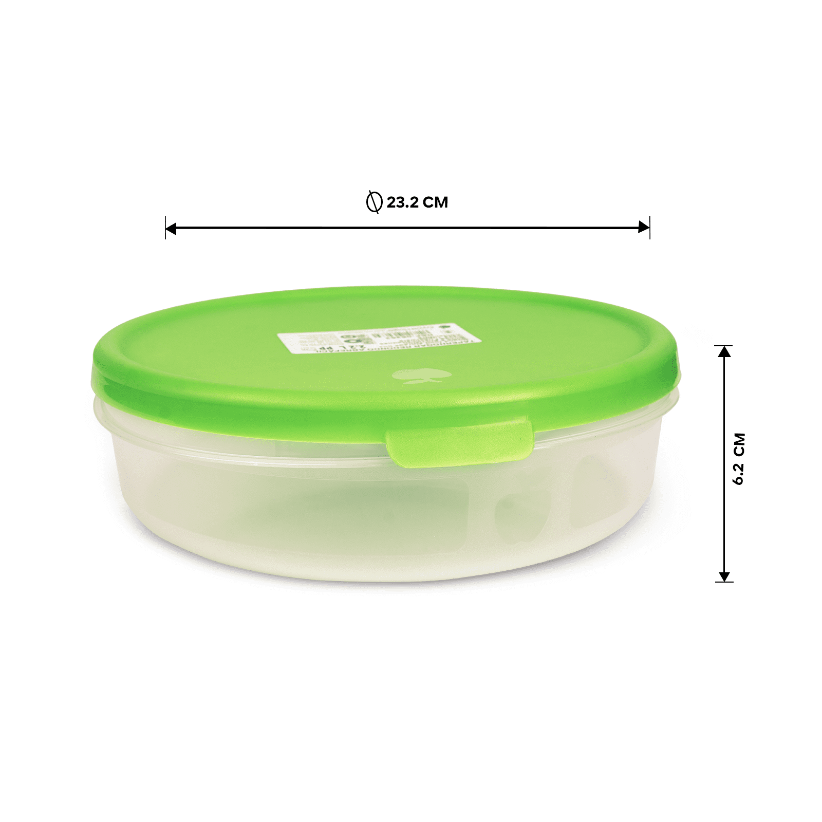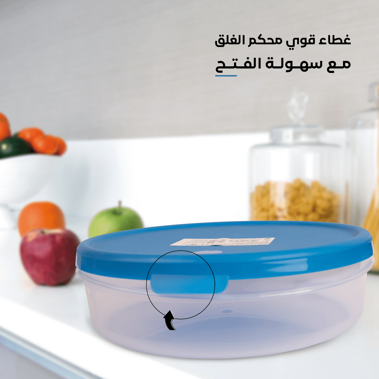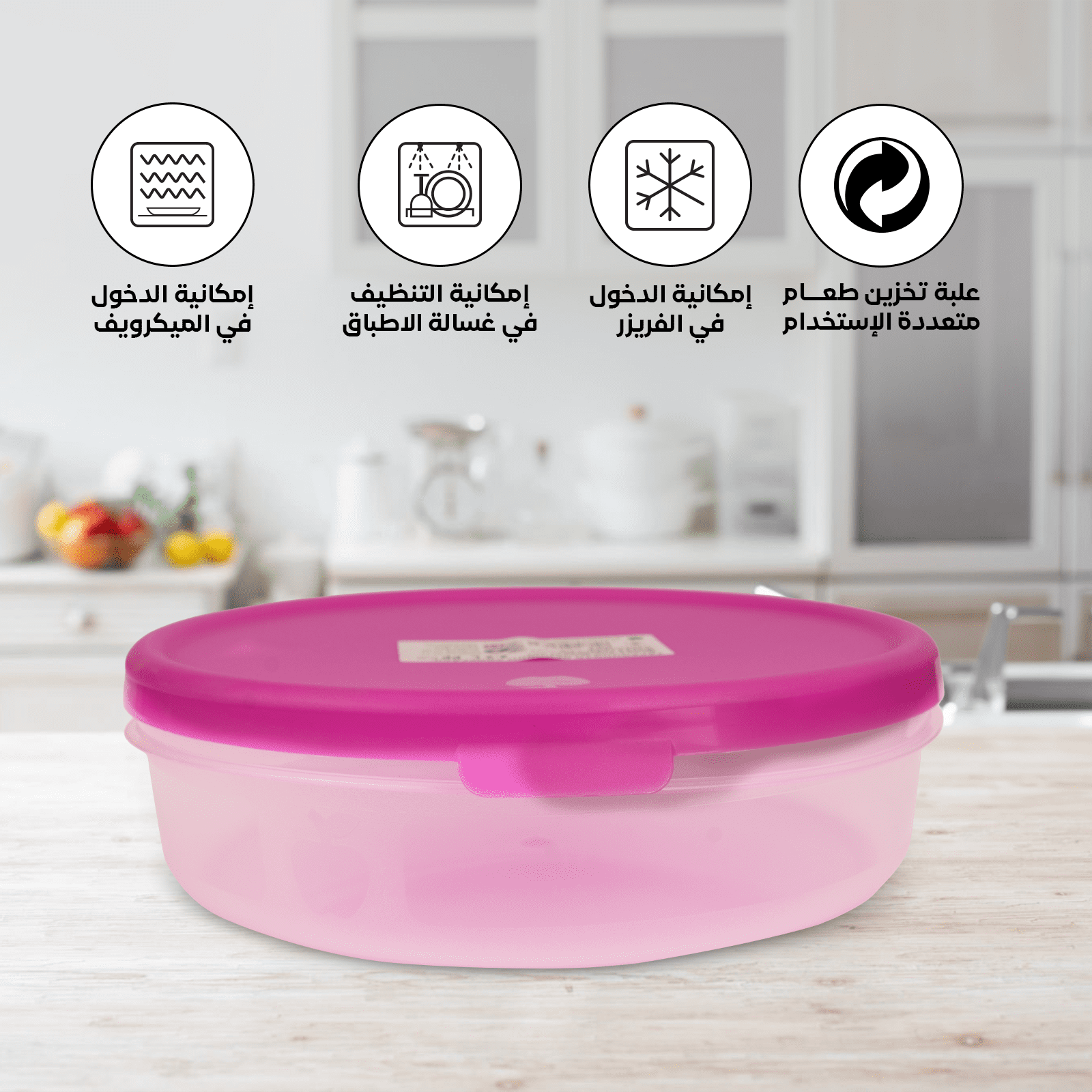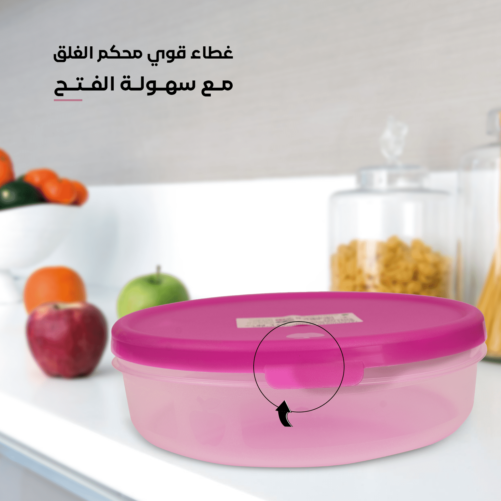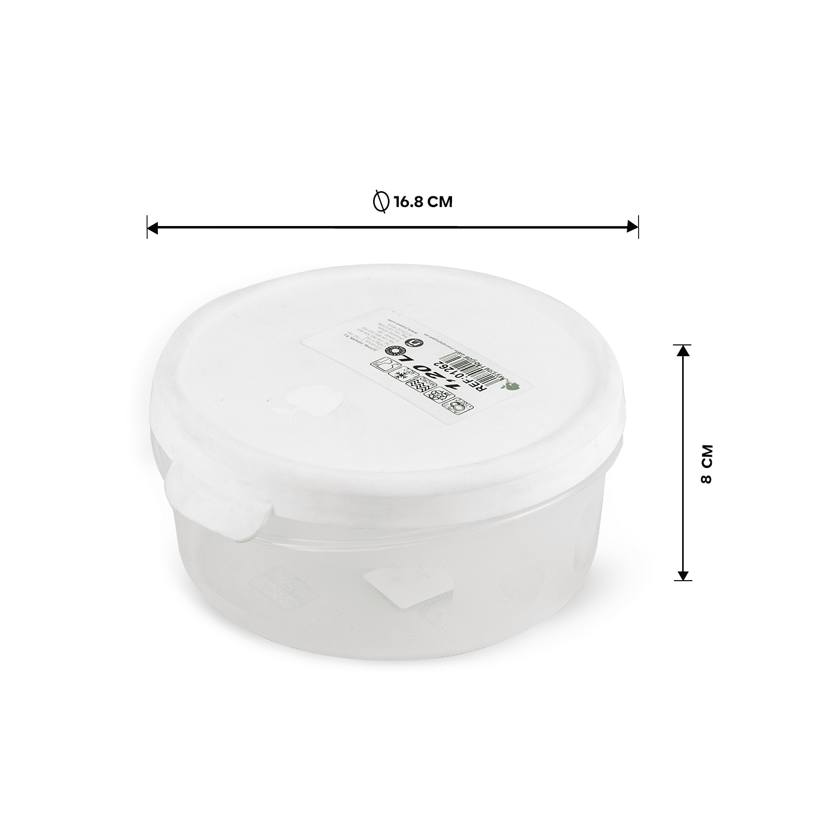 Round plastic food storage containers, different sizes and colors to suit all tastes, ideal for storing foods such as: dry ingredients and food scraps. They are designed in a circular shape to contribute to improving the use of the refrigerator space.