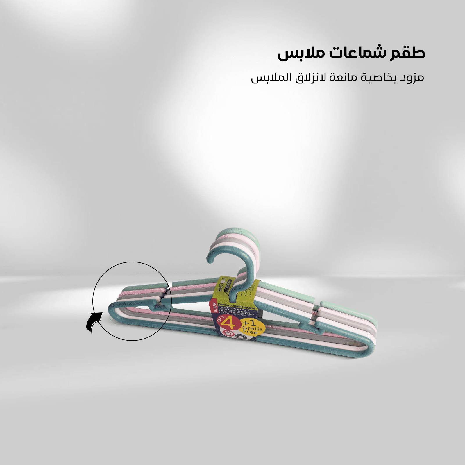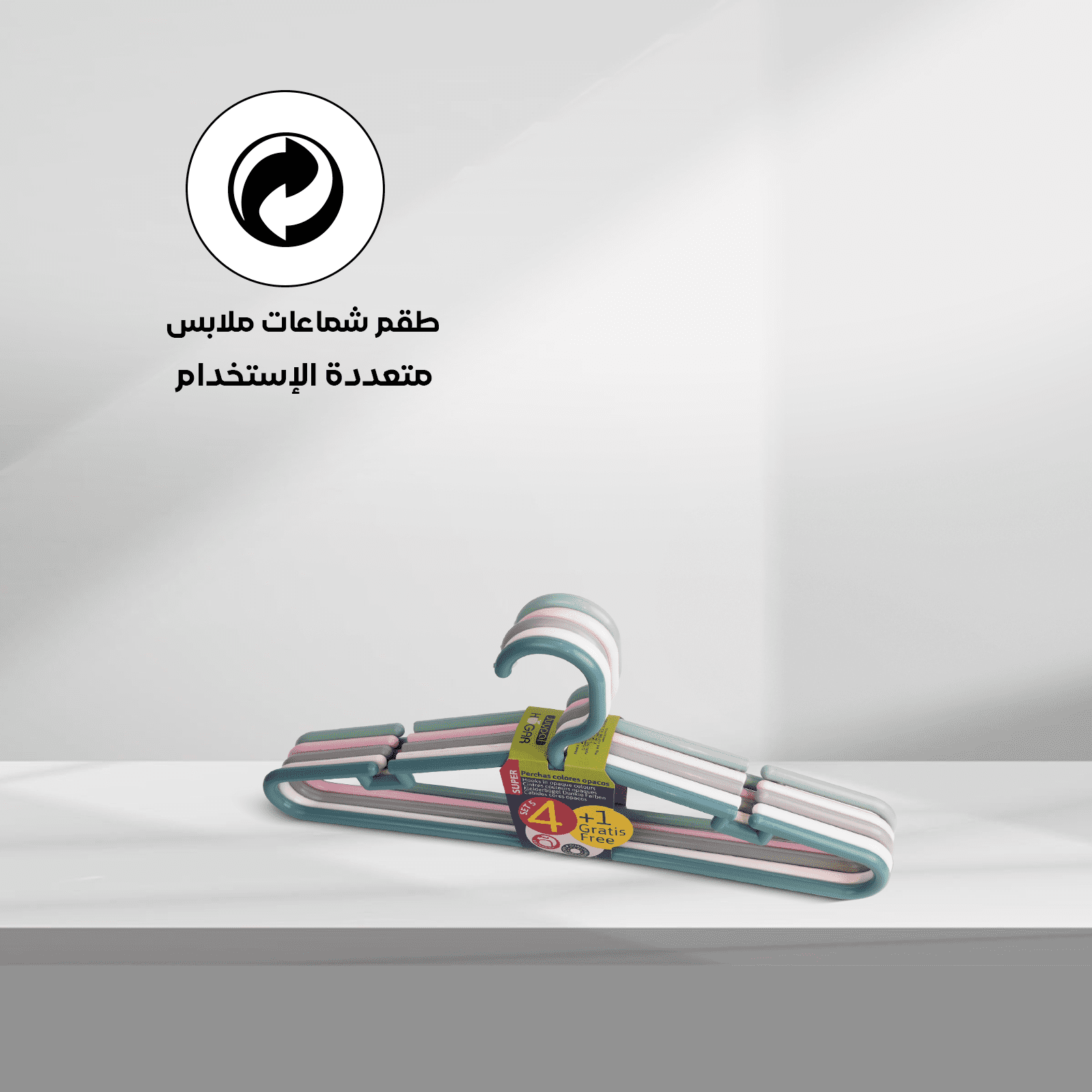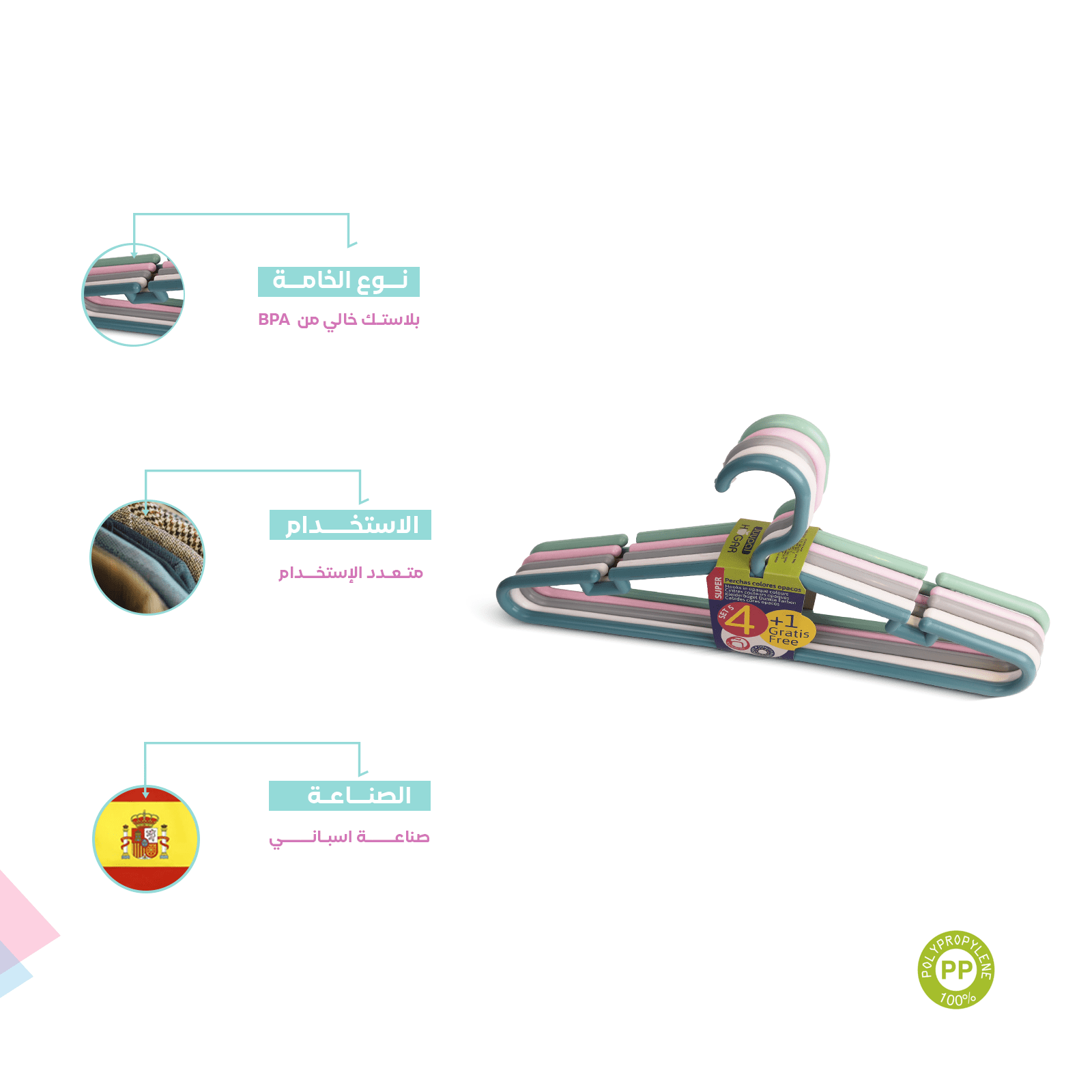 Large 5-piece plastic clothes hanger set in different colors, to suit all tastes, Spanish made of PP polypropylene